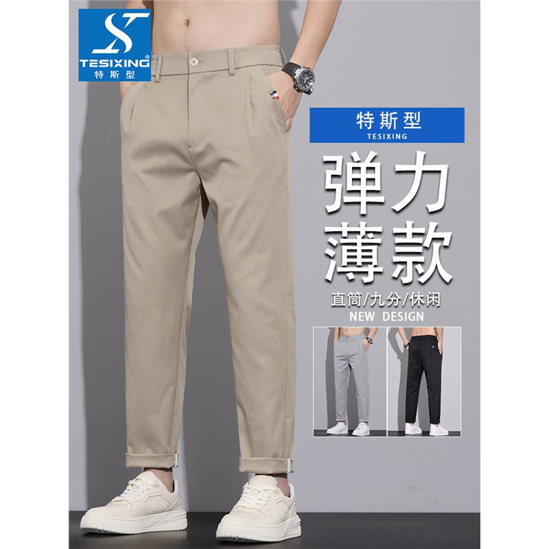 以纯YISHION休闲裤男士夏季薄款弹力直筒九分裤潮流修身小脚男生