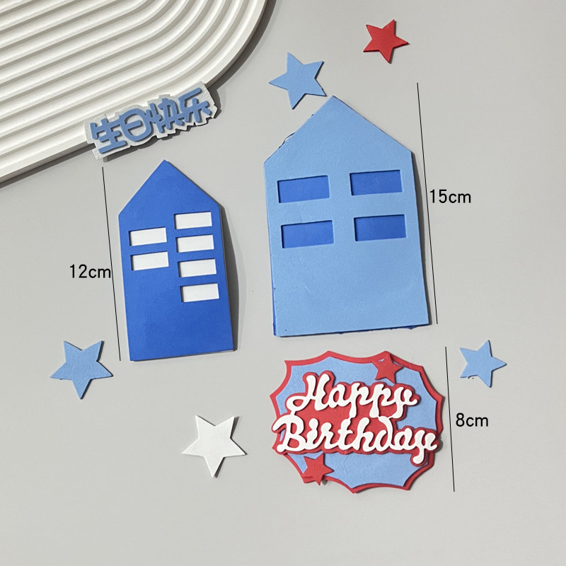 高楼房屋套装仿翻糖海绵奥特曼怪兽主题男孩宝宝生日蛋糕装饰摆件