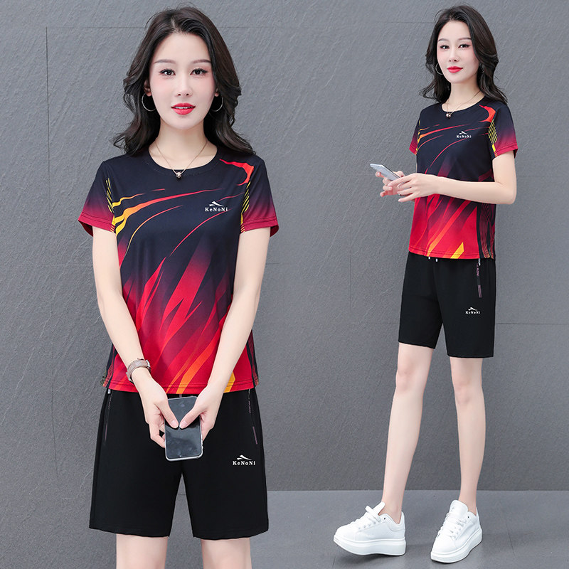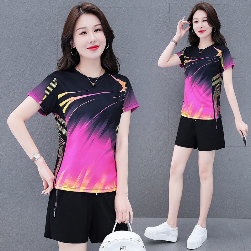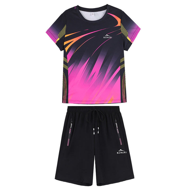 冰丝速干短裤短袖运动套装女款2025夏季情侣健身网球服大码两件套