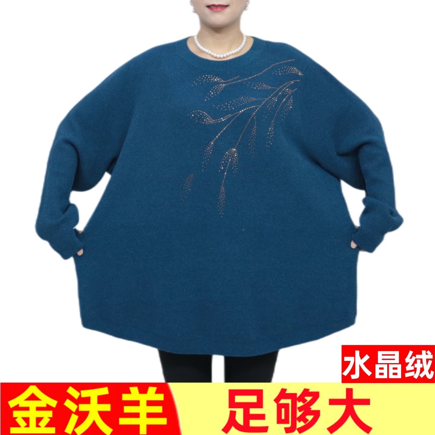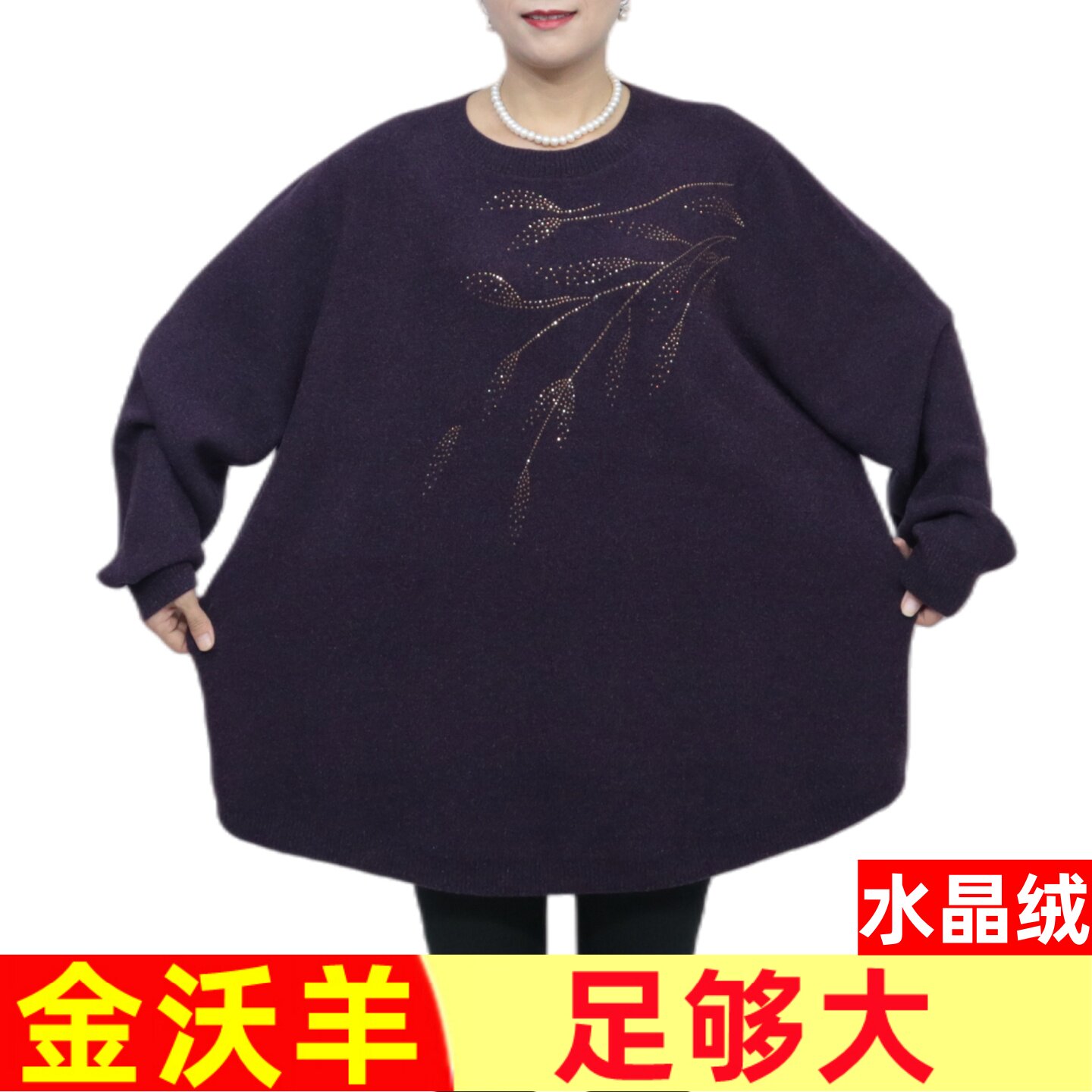 200斤加肥加大码女装特超胖妈妈毛衣宽松中老年秋冬装中长款8906