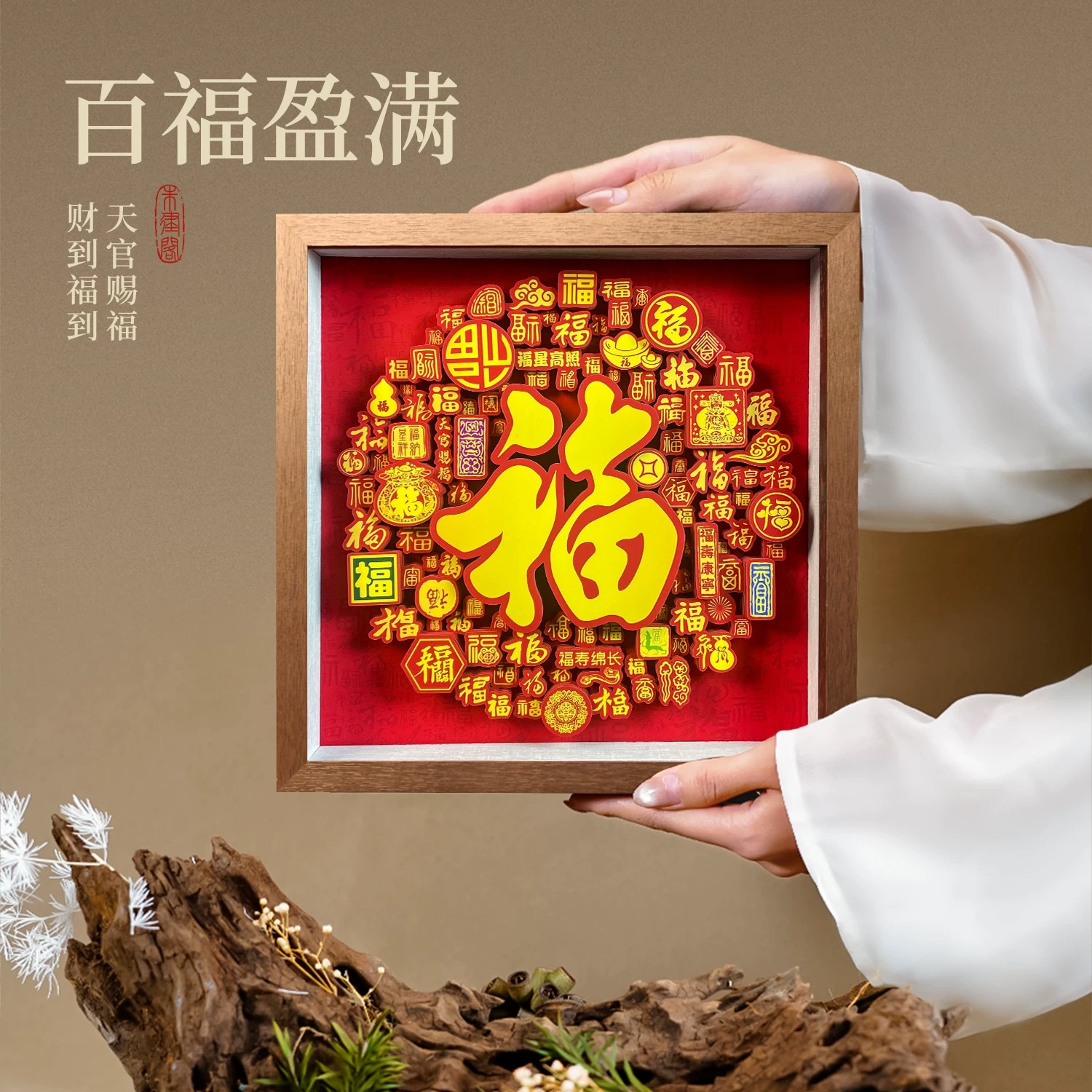 非遗手工剪纸百福图桌面客厅玄关装饰品乔迁入宅首选中式文创礼品