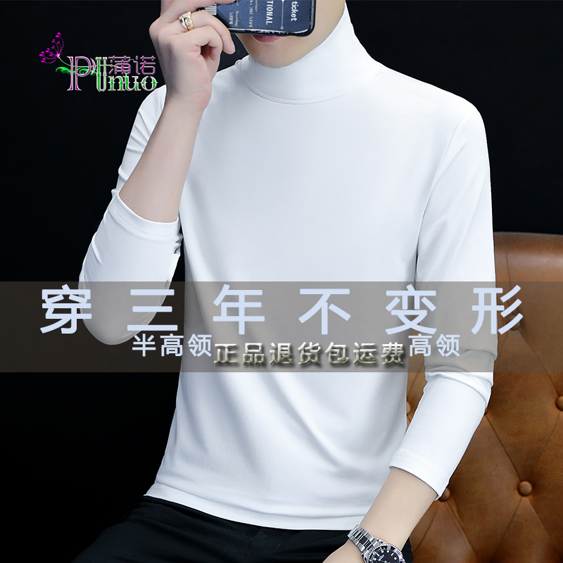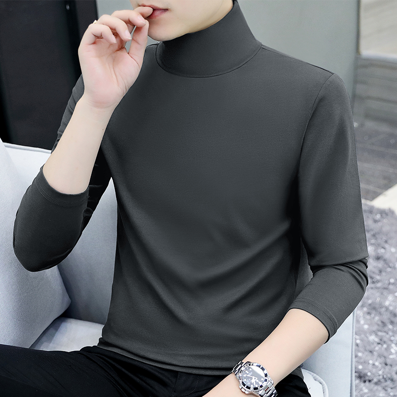 【限时活动】纯色纯棉长袖t恤男秋衣潮休闲简约碳灰色半高领上衣