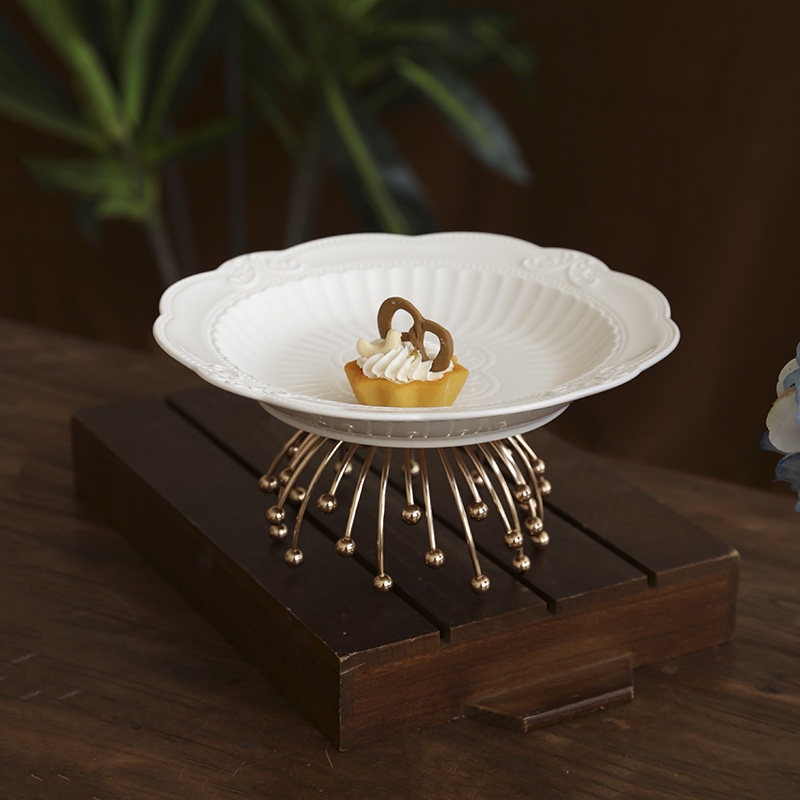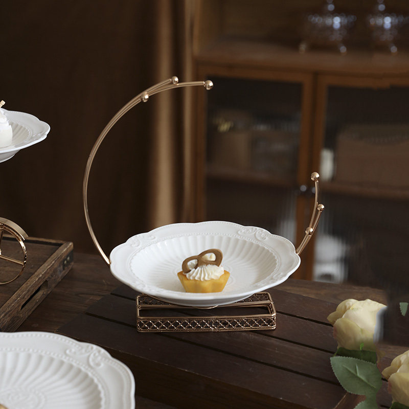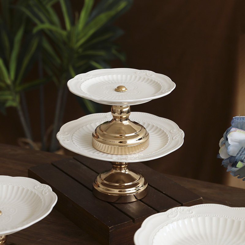 欧式浮雕陶瓷高脚果盘下午茶点心架水果盘零食甜品台轻奢蛋糕托盘
