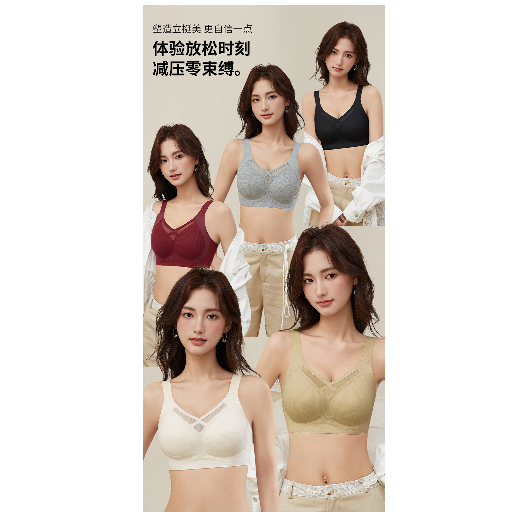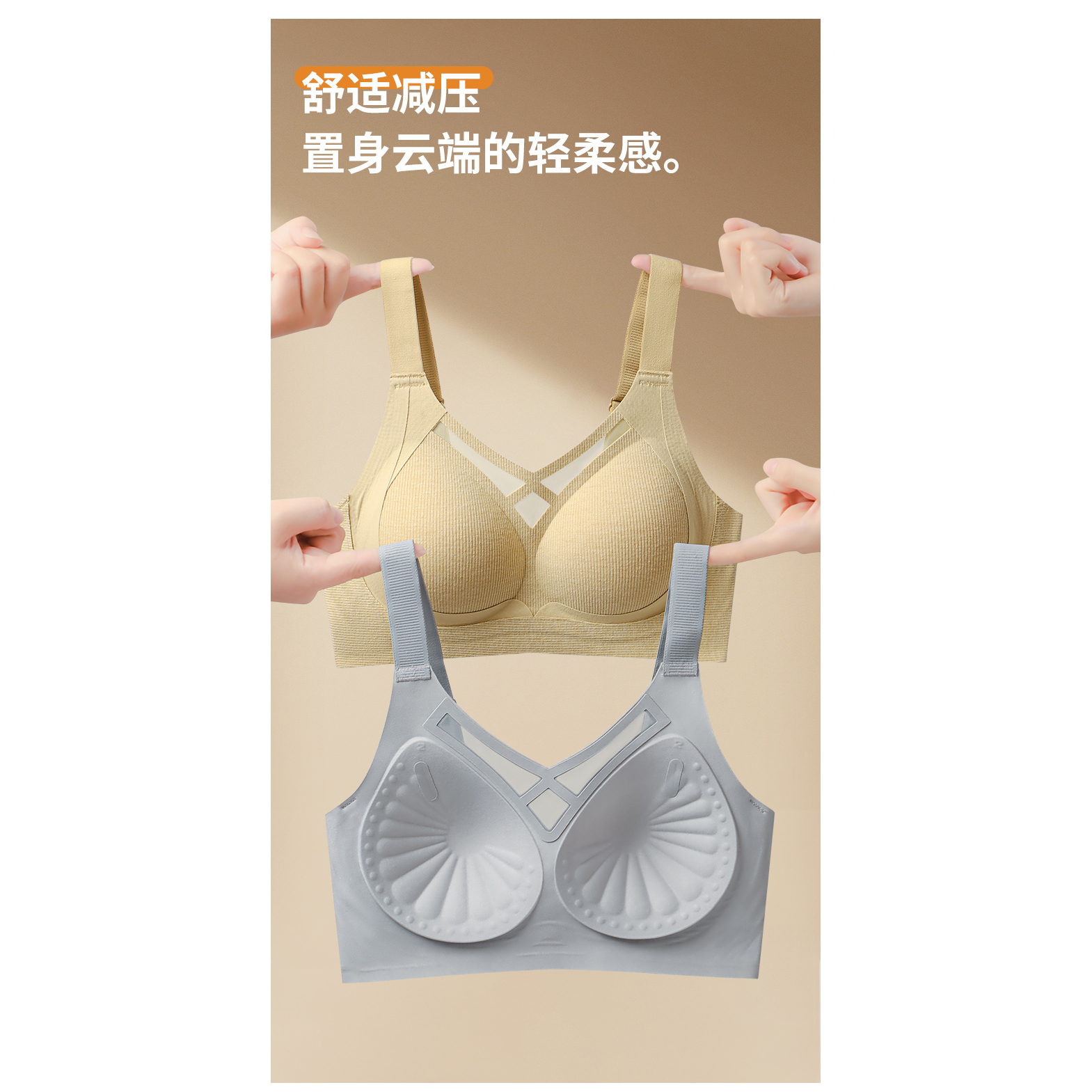 无痕内衣女小胸聚拢固定杯透气收副乳防下垂上薄下厚文胸罩
