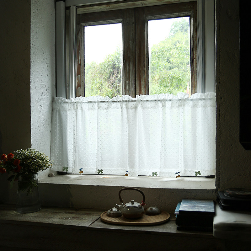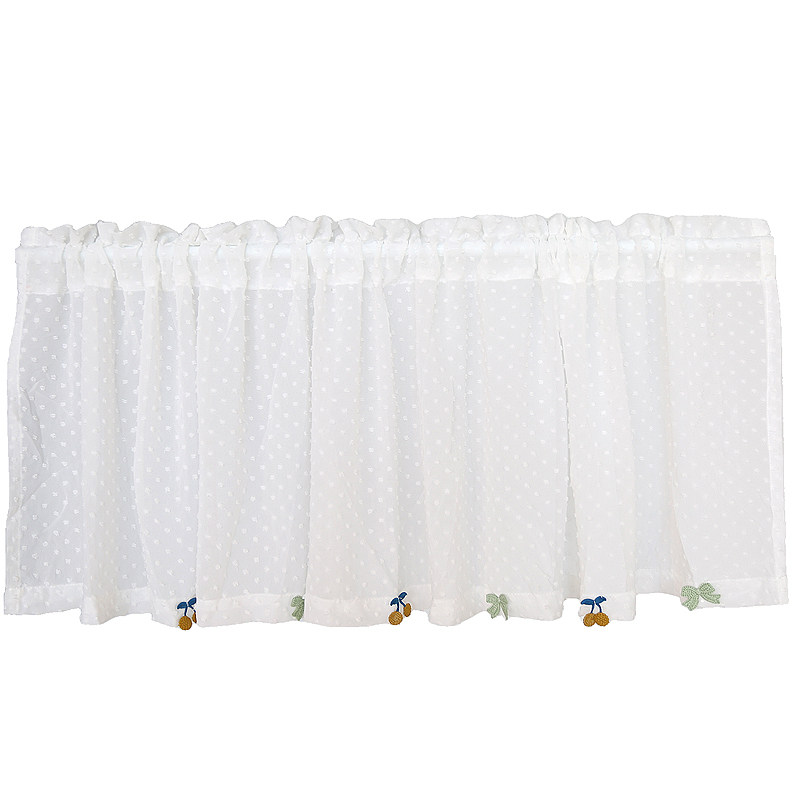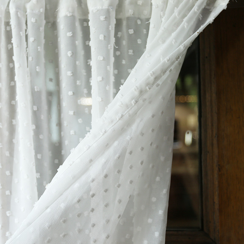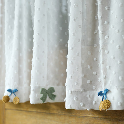 鸢尾乡旅美式小清新白色圆点半帘门帘成品窗帘透光穿杆厨房卧室