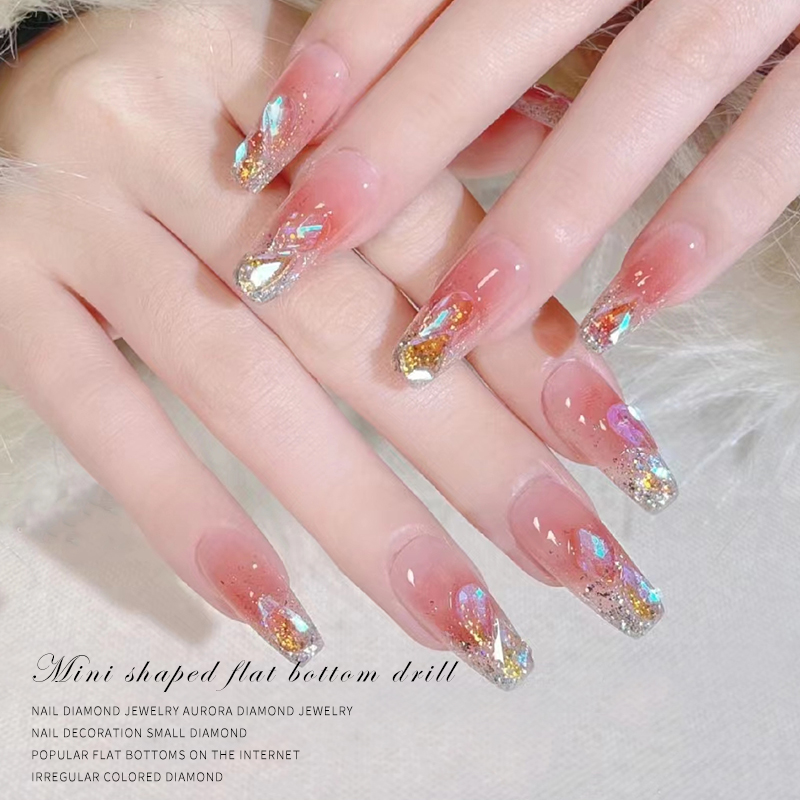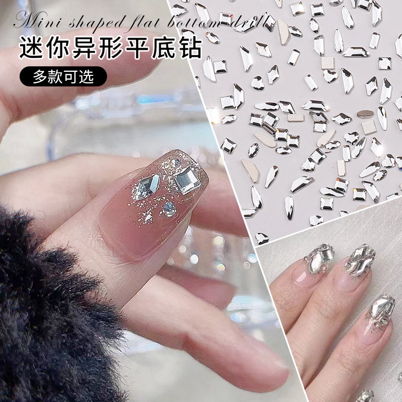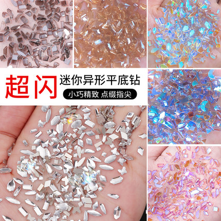 极光钻指甲装饰小配件平底冰透色小号异形温精灵透底钻饰美甲饰品