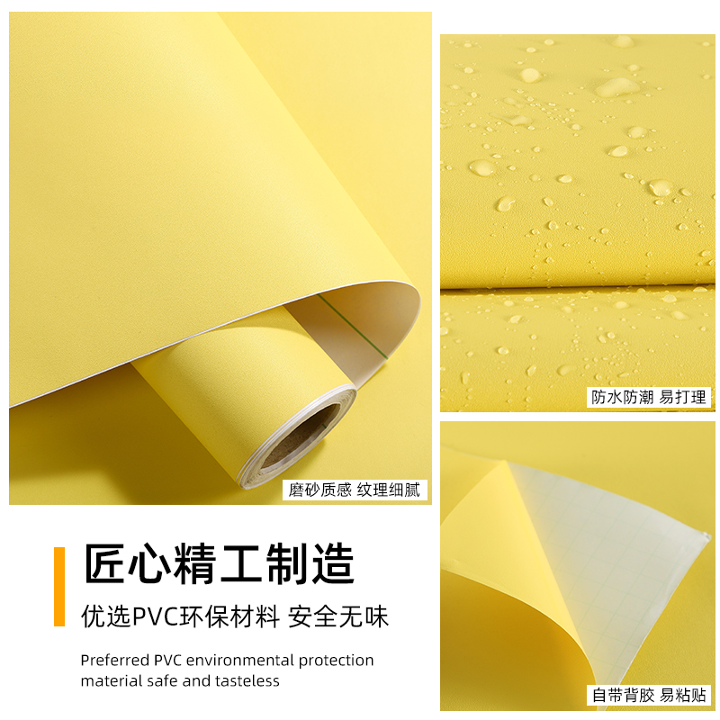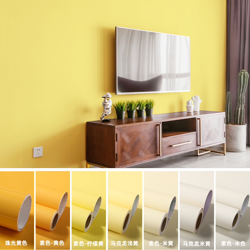 黄色贴纸广告纸自粘防水防潮幼儿园墙纸壁纸米黄不干胶即时贴墙贴