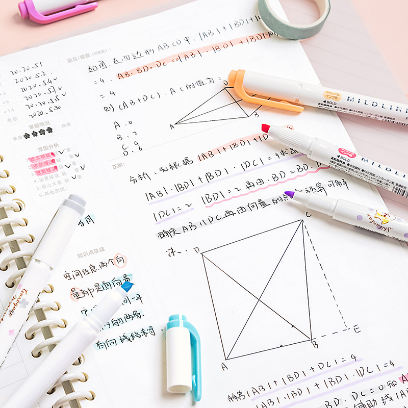 日本ZEBRA斑马荧光色笔WKT7淡色双头标记笔学生用手帐文具记号笔