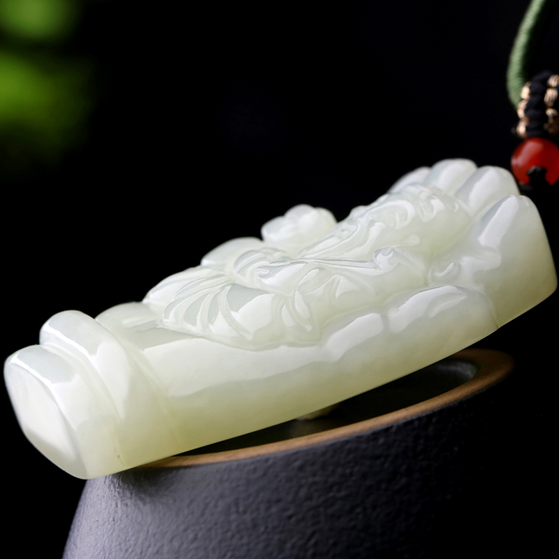 四通新疆和田玉挂件男款玉石天然青白玉吊坠元宝文财神爷伸手来财