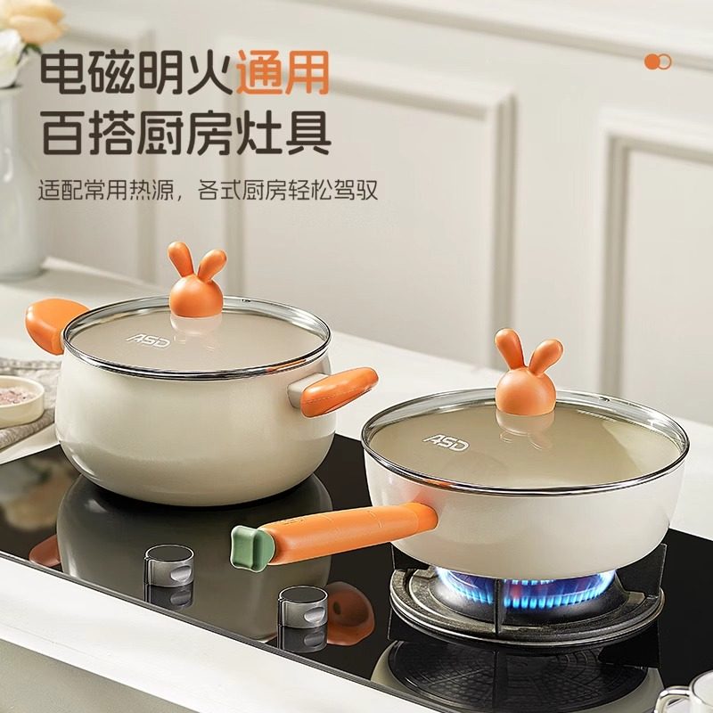 爱仕达奶锅套装不粘锅家用钛陶瓷小煎锅汤锅燃气电磁炉通用辅食锅