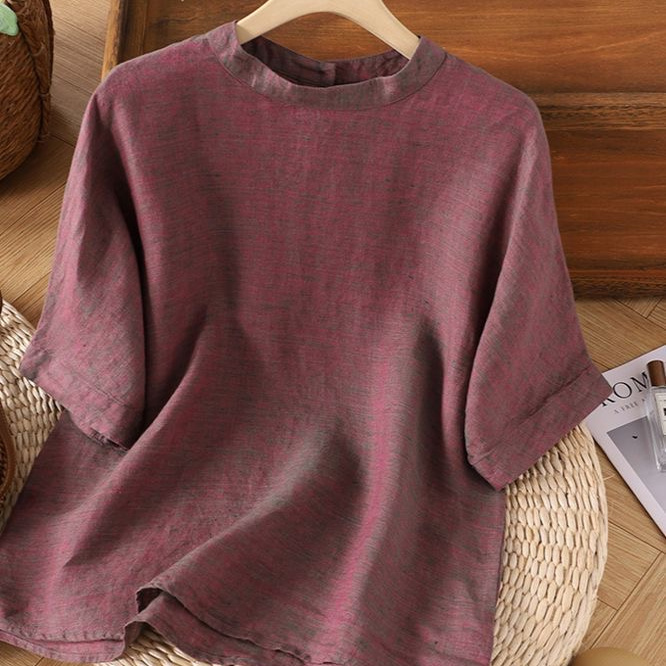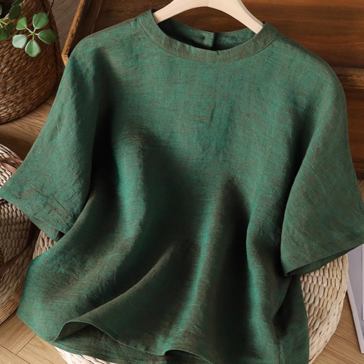 2025夏季新款汉麻短袖宽松休闲文艺复古纯色百搭亚麻圆领上衣小衫