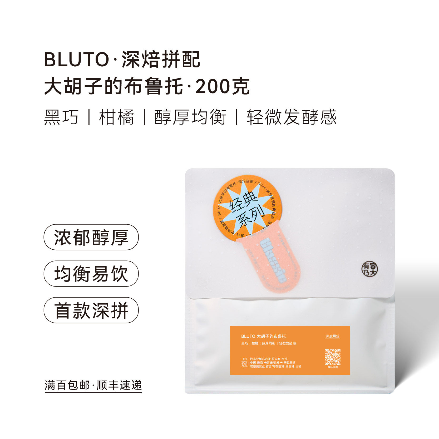 有容乃大BLUTO BLEND布鲁托深焙拼配意式浓缩手冲咖啡豆黑巧甜感