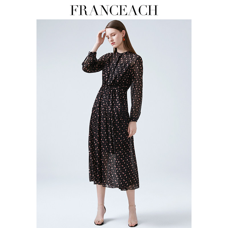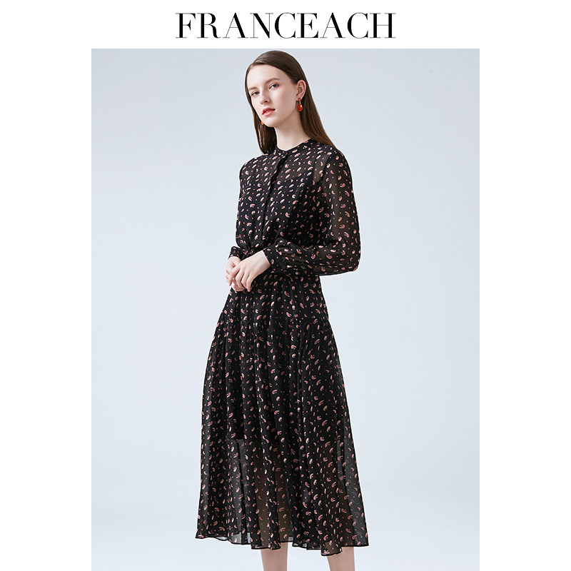 法涵意弛2023年春装新款真丝连衣裙女桑蚕丝年轻款长袖碎花衬衫裙
