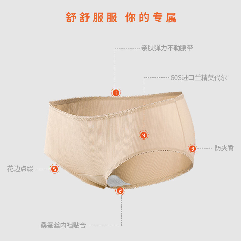 桔内60S莫代尔螺纹桑蚕丝档女士内裤透气性感中腰女生三角裤6526