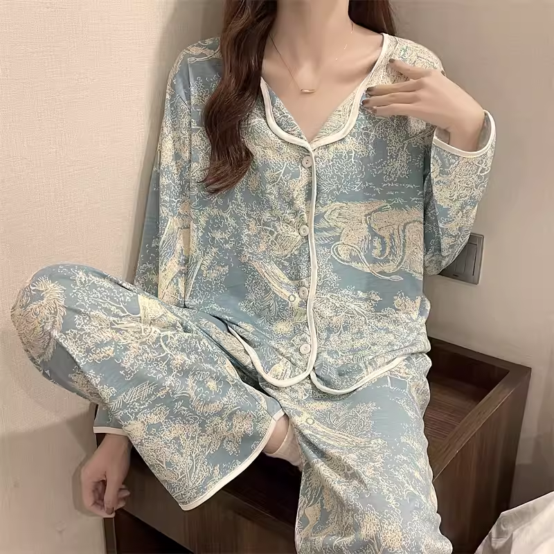 睡衣女春秋季纯棉长袖裤2022年新款网红风高级感家居服套装可外穿