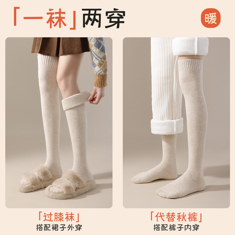 过膝袜子女款秋冬季长筒袜加绒加厚保暖小腿袜护膝大腿高筒袜冬款