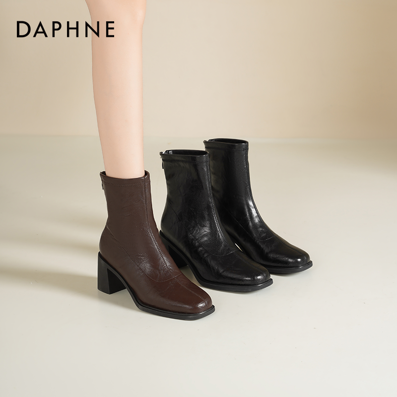 达芙妮粗跟2025冬高跟短靴瘦瘦靴