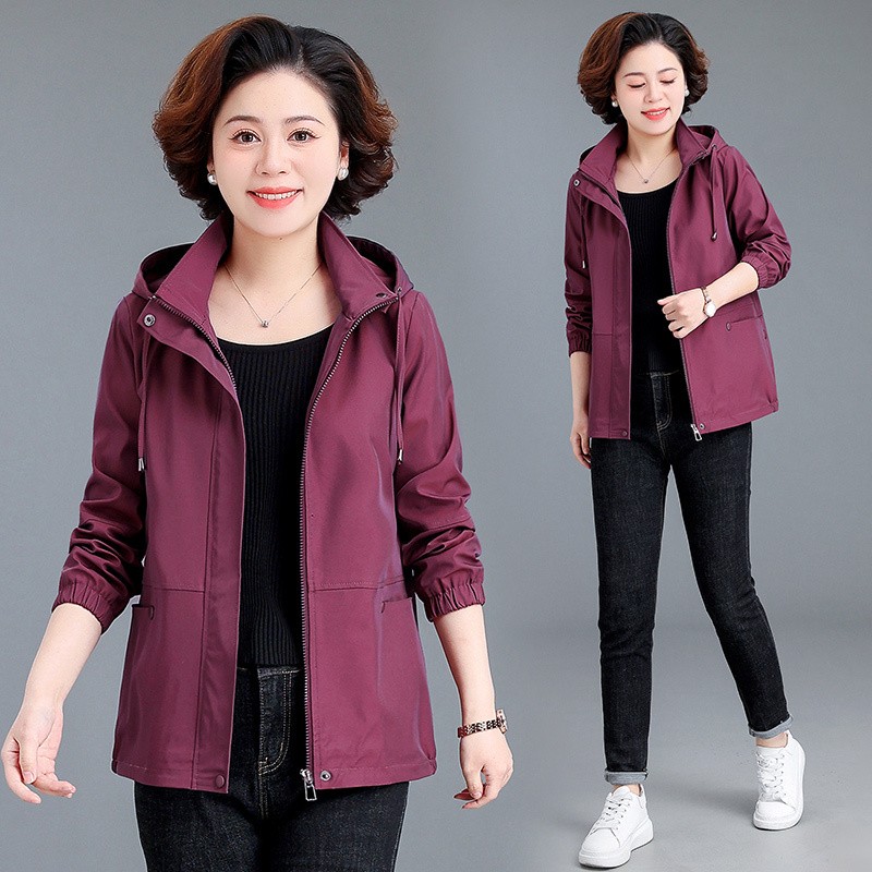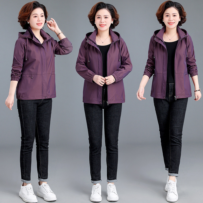 中年妈妈秋季短款外套女时尚夹克小个子中老年女春秋品牌休闲风衣