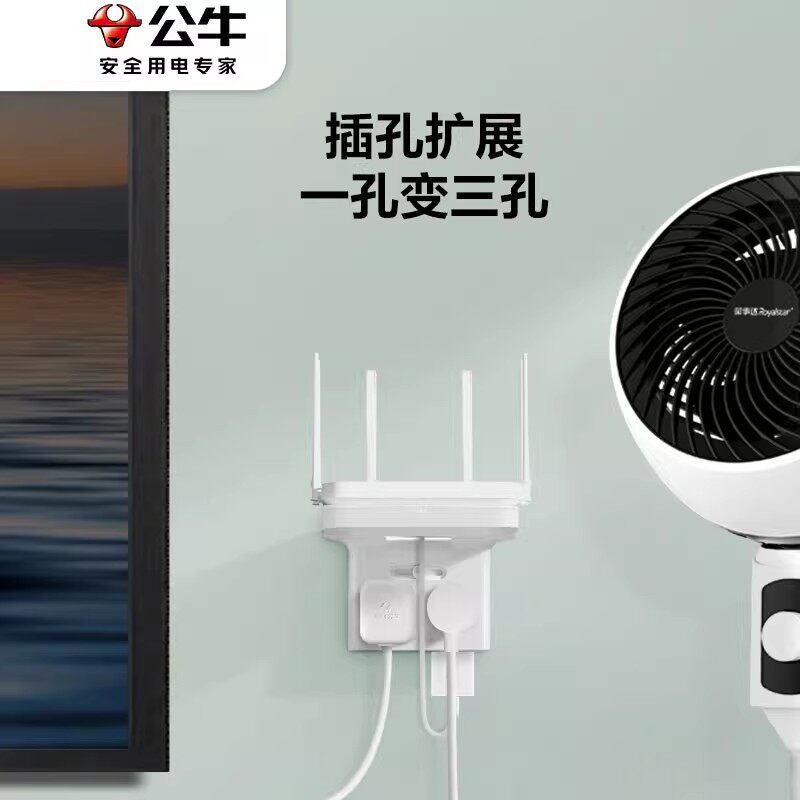 公牛拓展插座一转三转换器多功能置物架插头路由器摄像头支架插板
