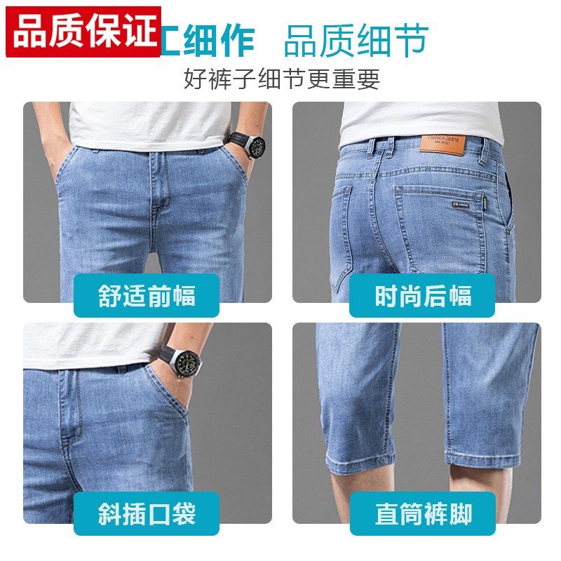 新款夏季薄款冰丝七分牛仔短裤男士宽松直筒7分休闲弹力中裤子男