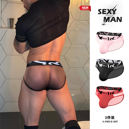2条装蛇纹透明三角裤性感纯色潮