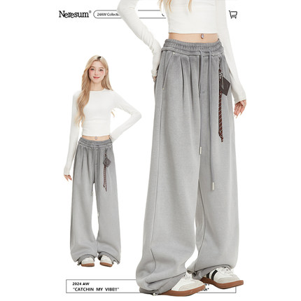 NERESUM灰色卫裤女秋冬季美式复古垂感裤子宽松直筒小个子运动裤