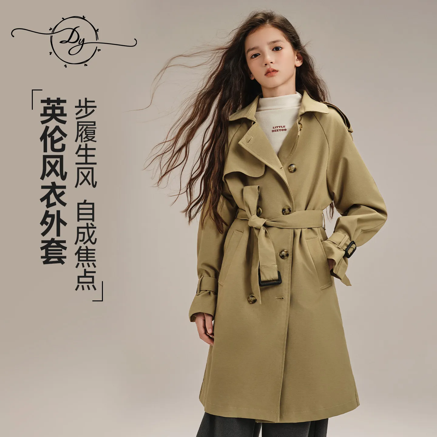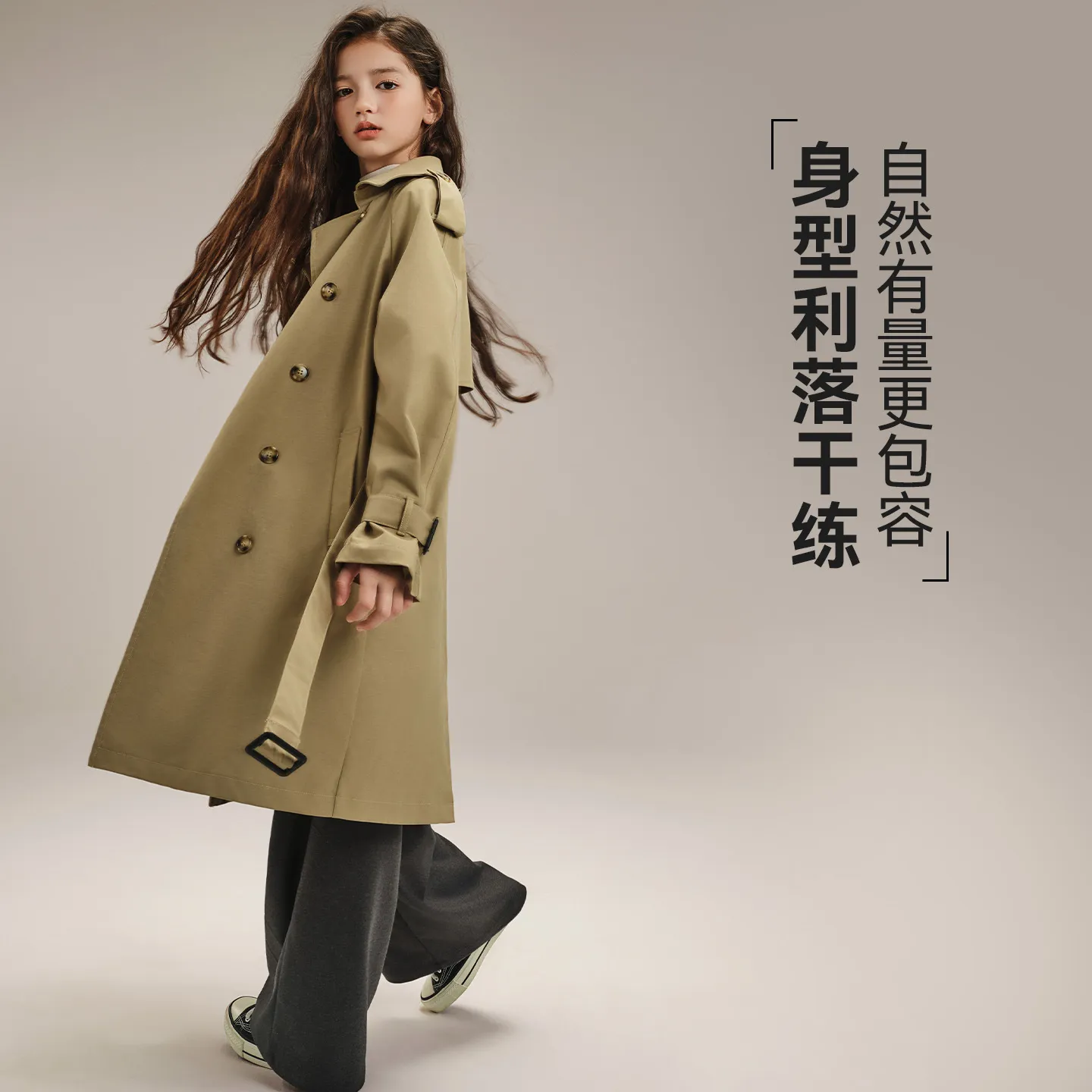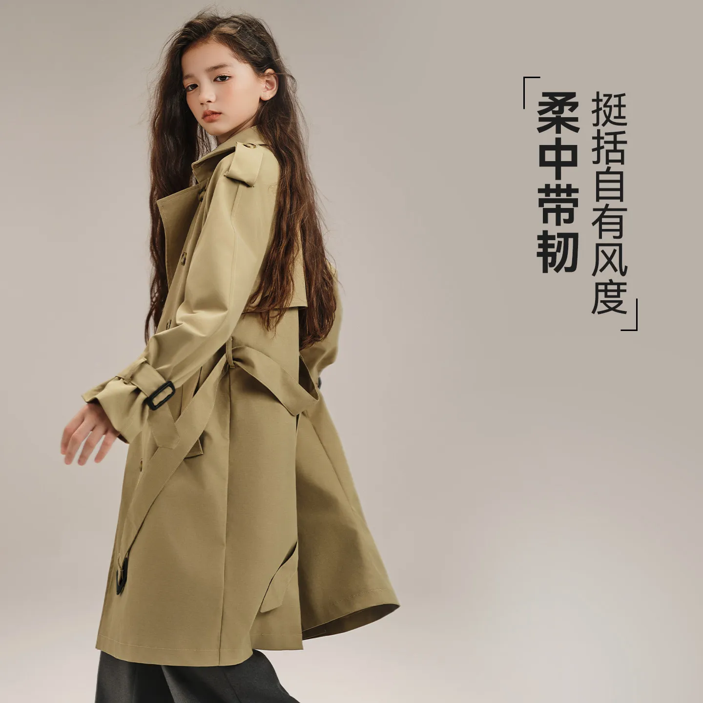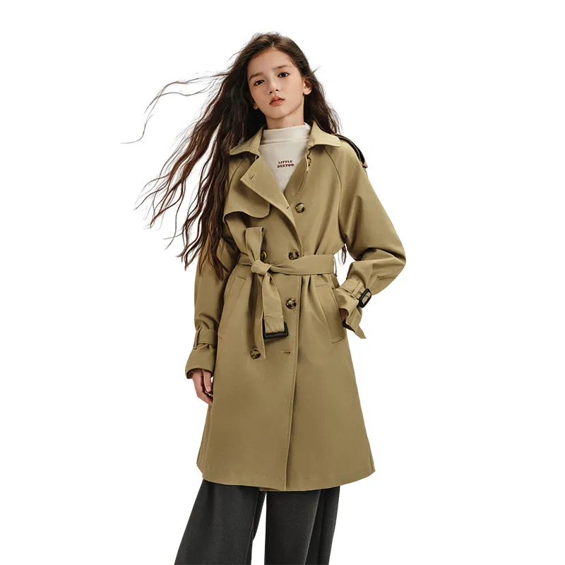 moditiger女童英伦风衣外套春秋卡其擦肩长袖中长款气质修身显瘦
