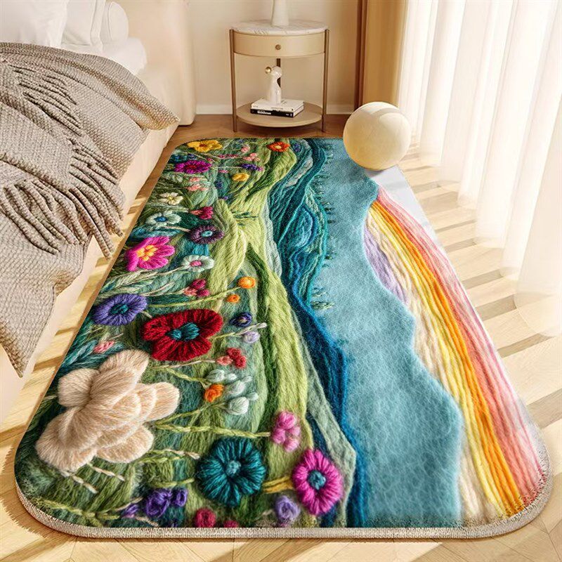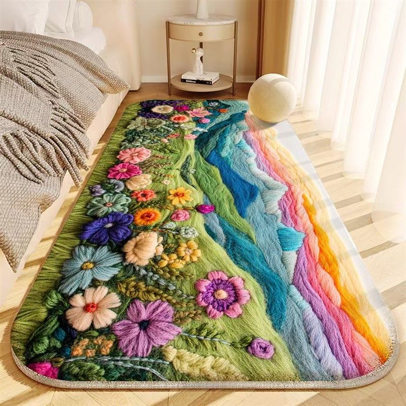 田园简约卧室床边毯多彩花朵房间客厅加厚隔音床边垫床尾地毯防滑