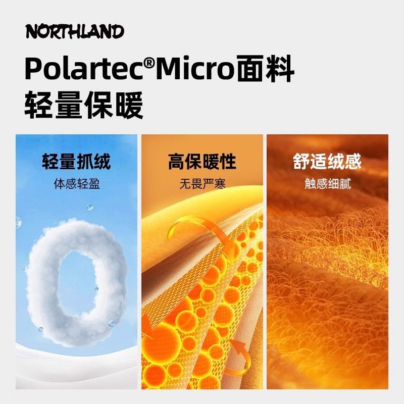 诺诗兰2025新款Polartec micro抓绒面料立领长袖T恤徒步男女