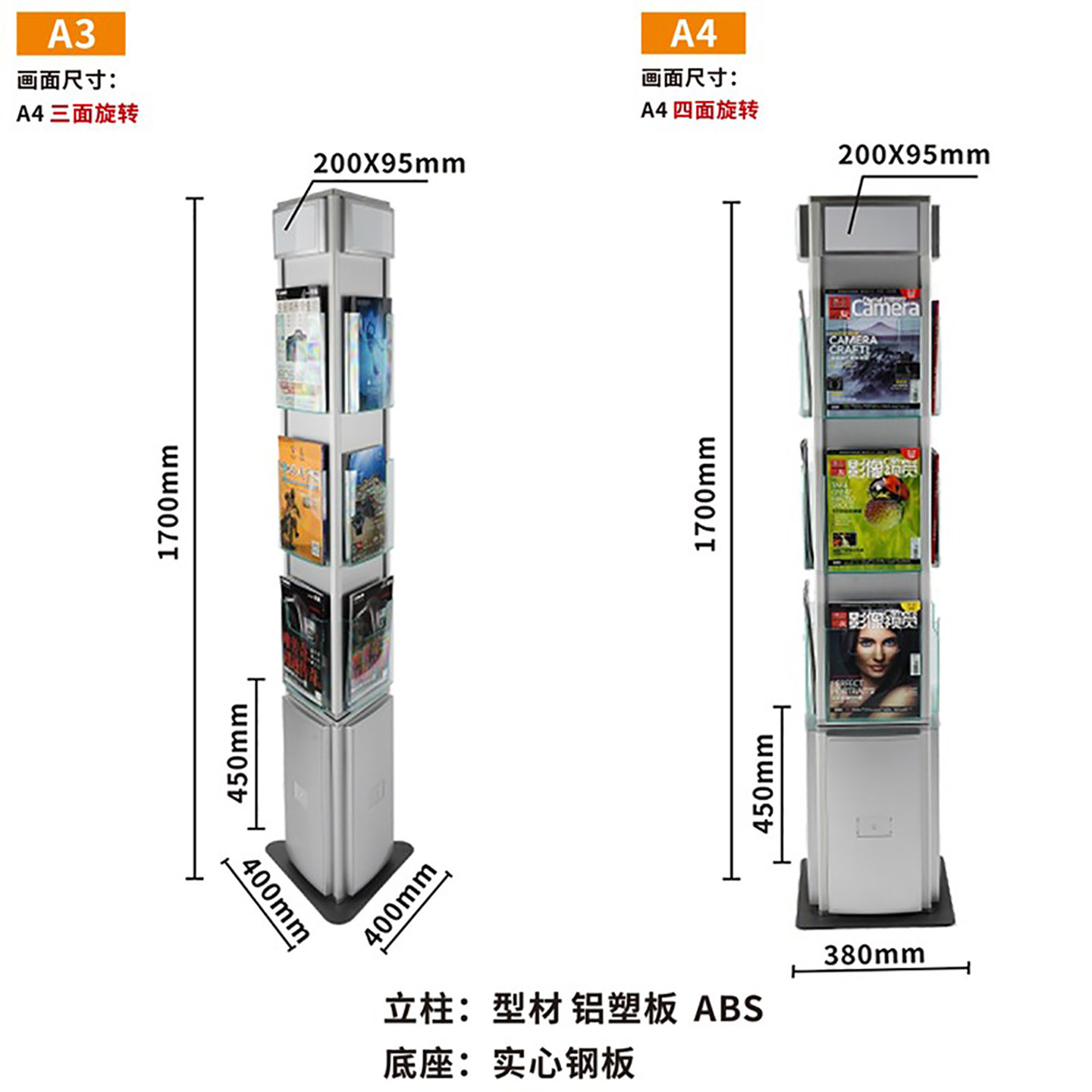 银行杂志架报刊架三面旋转资料架A4宣传展架立式落地书报架展示架