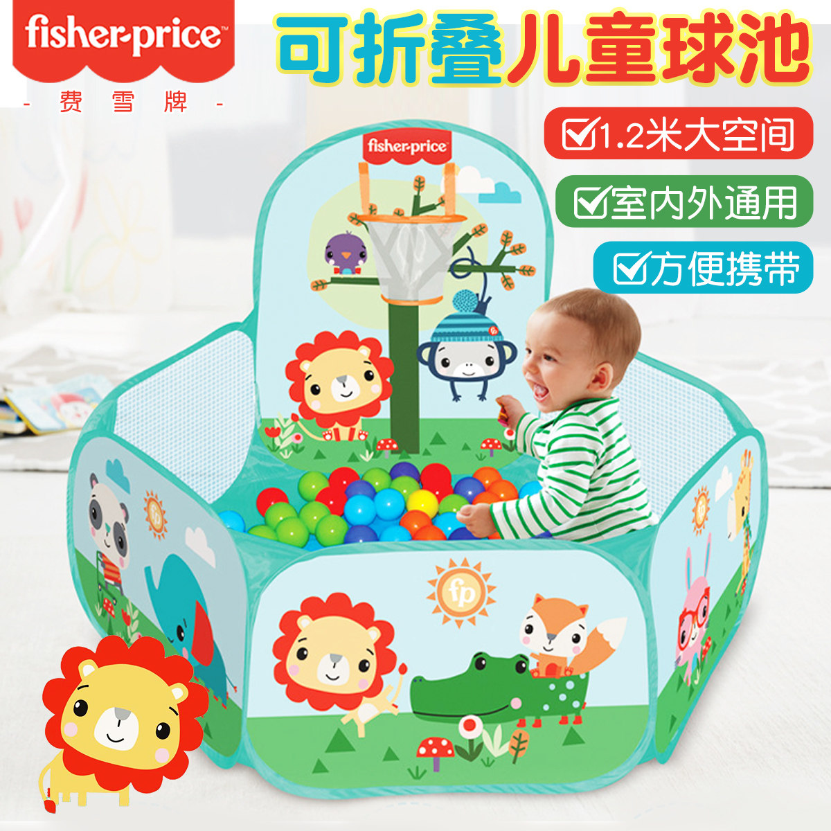 费雪儿童海洋球球池游戏屋彩色投篮波波球围栏宝宝室内游乐场玩具