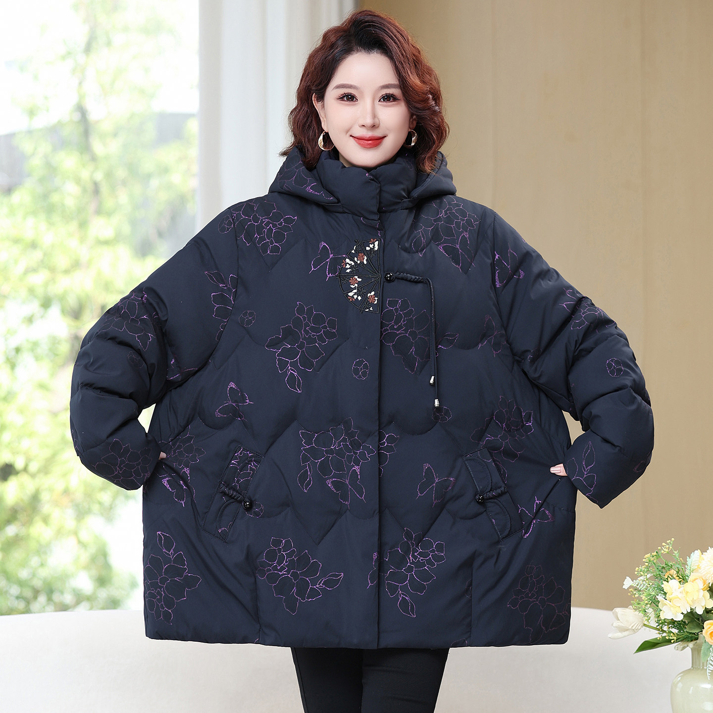 特体大码冬装短款羽绒服女中老年