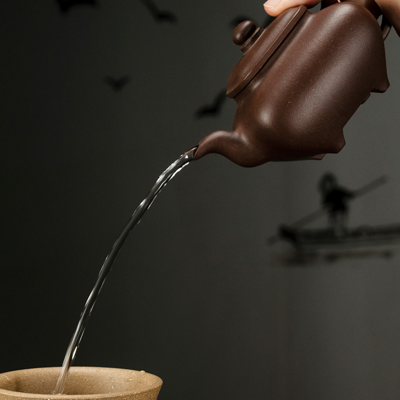 紫砂壶深井紫泥四方传炉手工茶壶