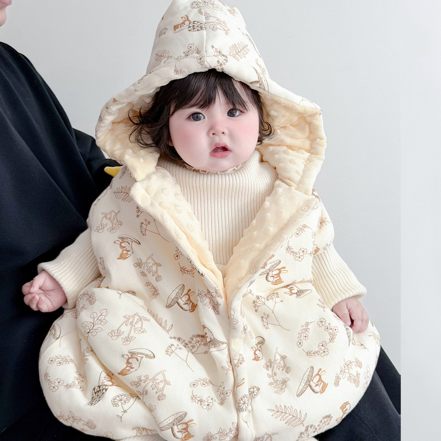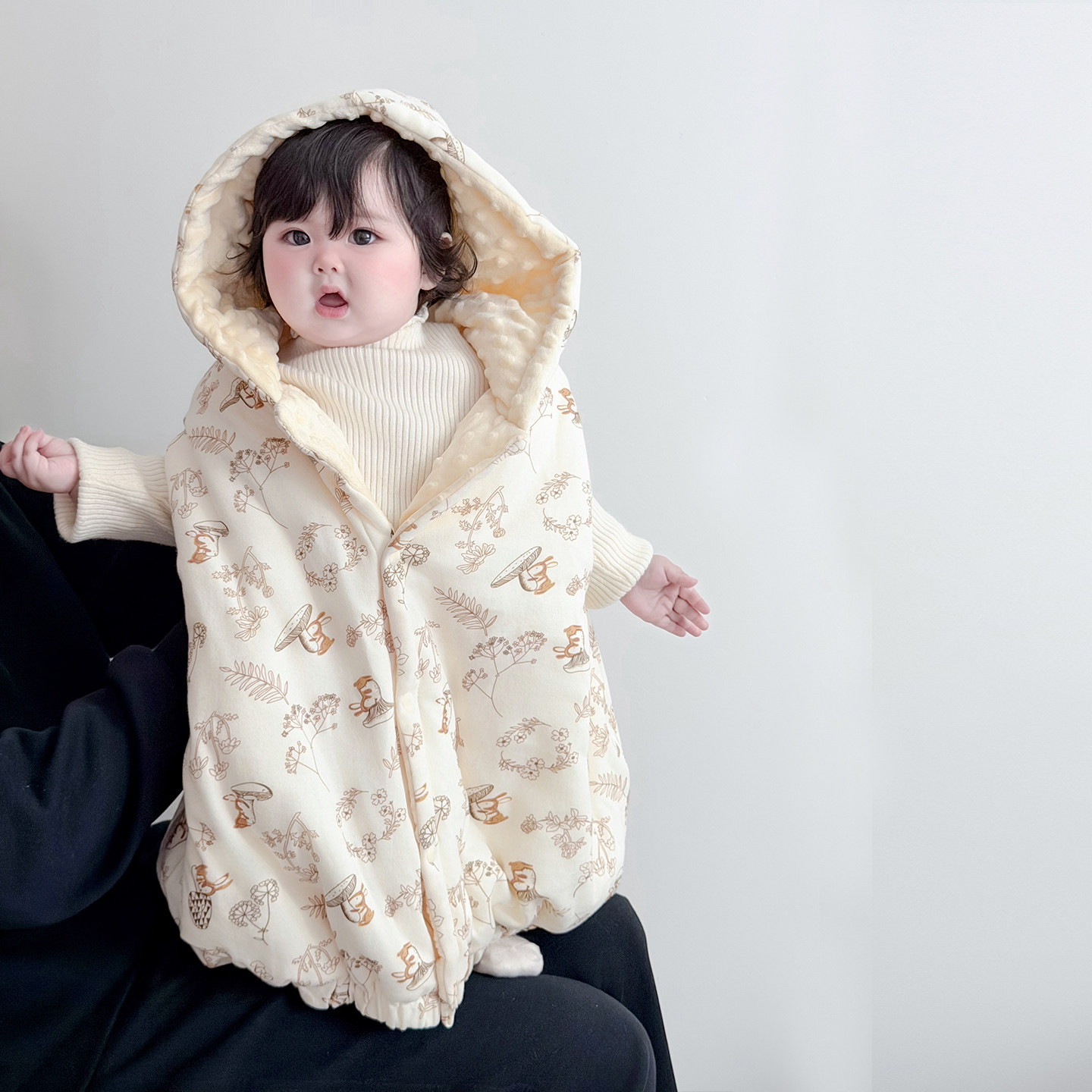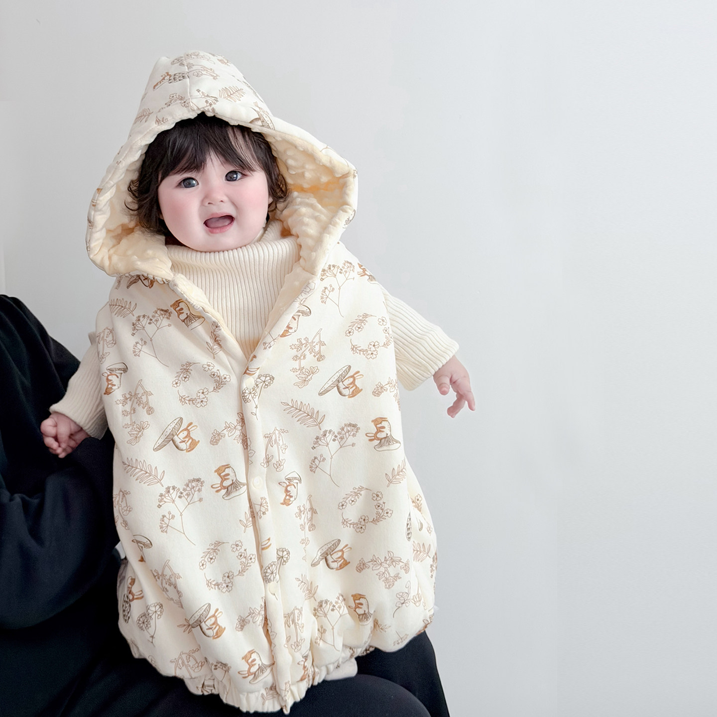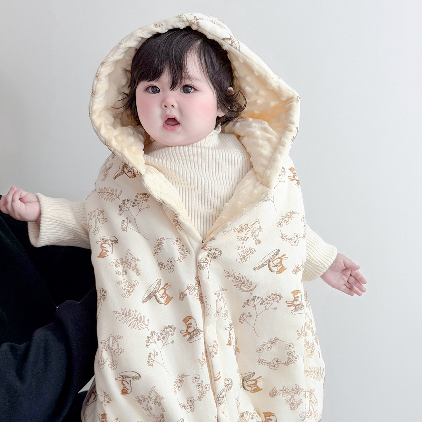 婴儿斗篷披风秋冬外出男孩女童挡风披肩加厚宝宝防风保暖外套抱被