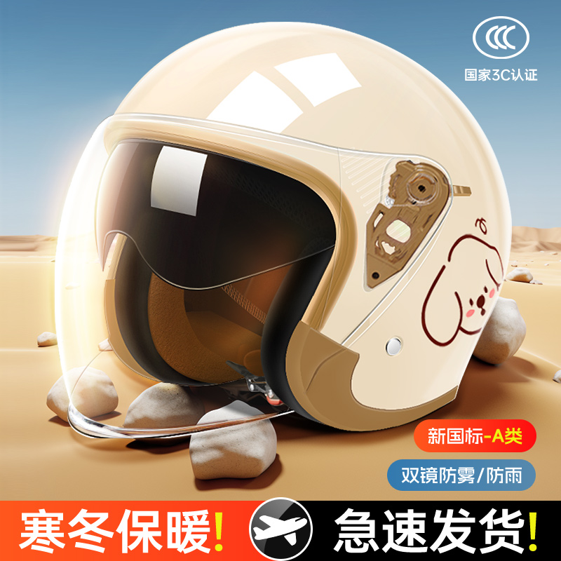 3c认证电动电瓶车头盔男女摩托半盔安全帽四季通用秋冬保暖2025新