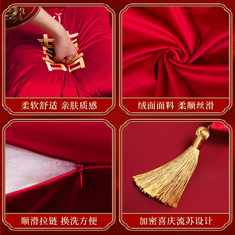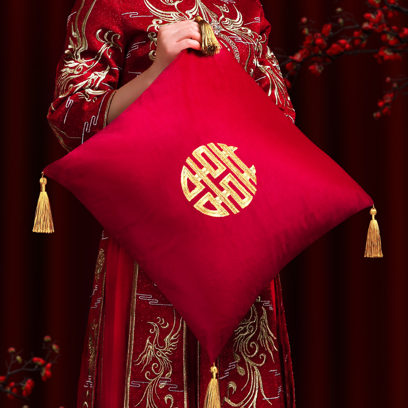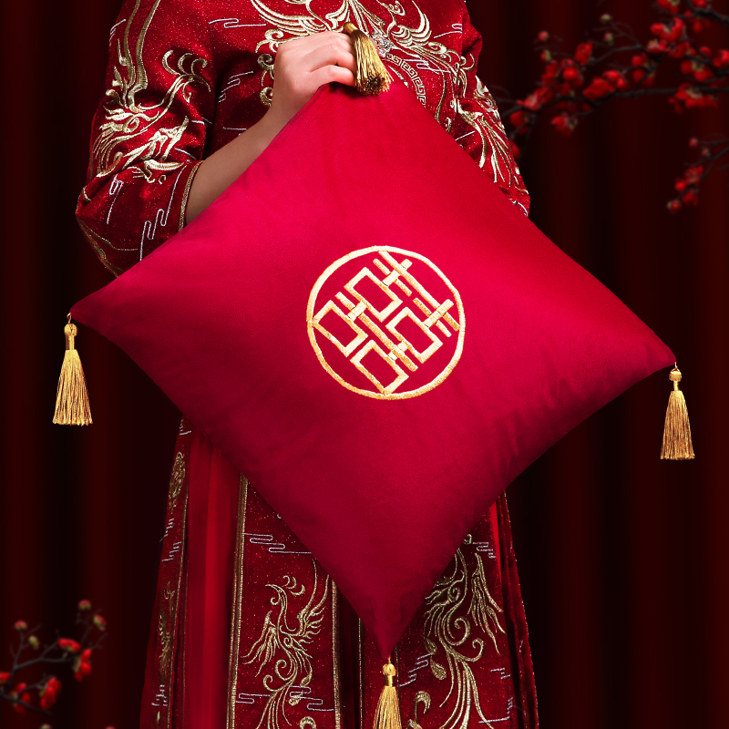 结婚抱枕一对婚庆婚房压床红色喜字靠枕新婚沙发双喜十字绣靠背垫