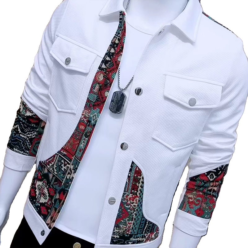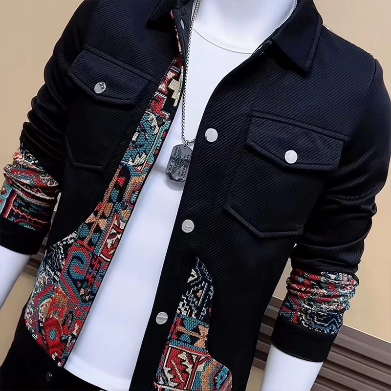 春秋新款男士夹克韩版修身短款翻领刺绣中国风休闲时尚外套上衣潮