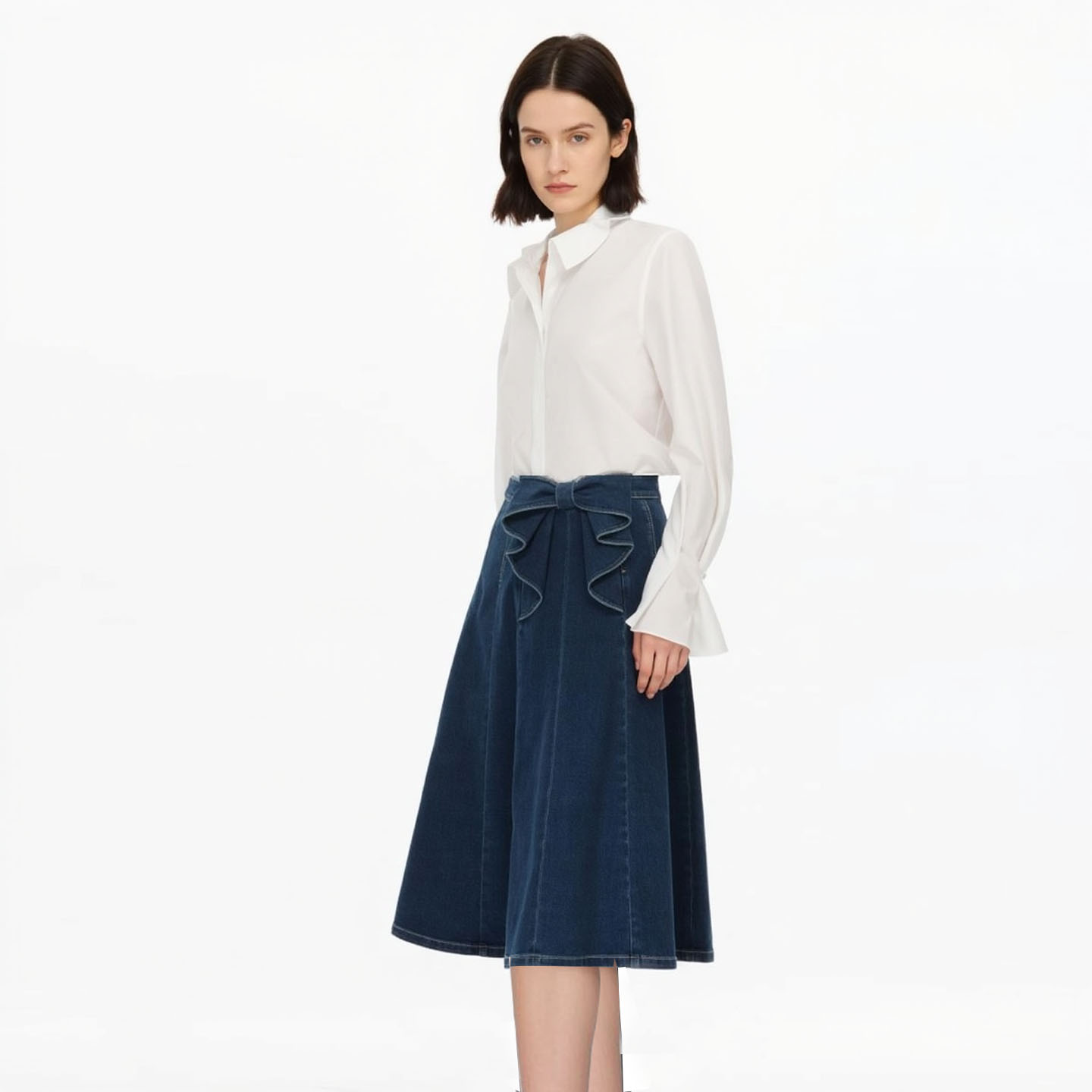 zyqvm moda25秋新款高腰A字半身裙百搭含棉混纺立体蝴蝶结牛仔裙