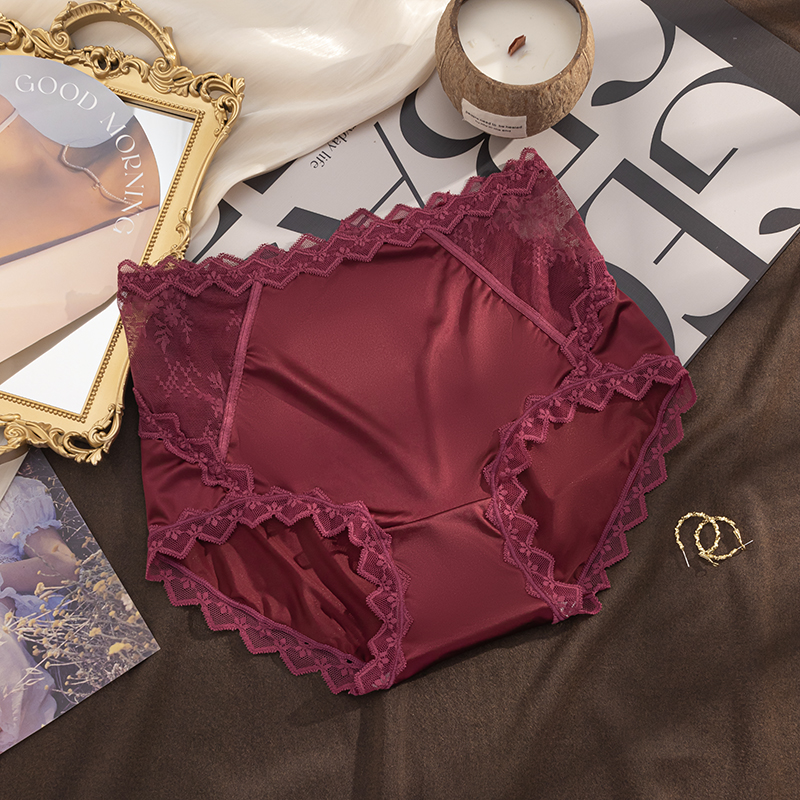 性感新款奢华中高腰收腹内裤女士缎面蕾丝边无痕纯棉裆抑菌提臀裤
