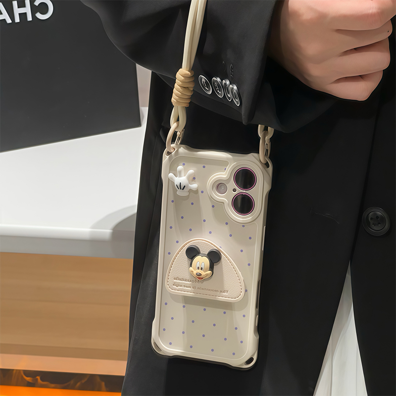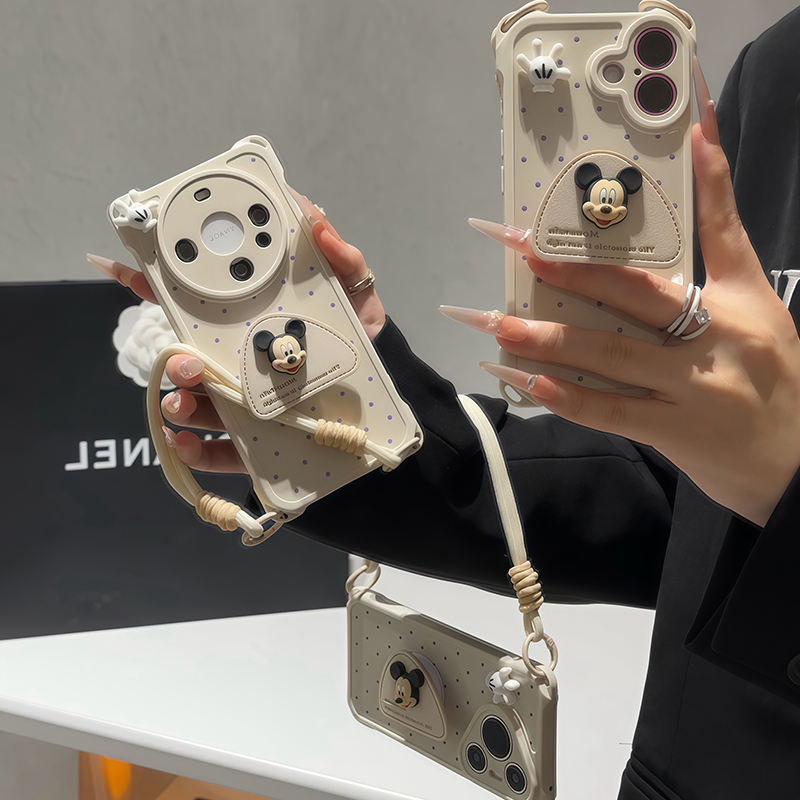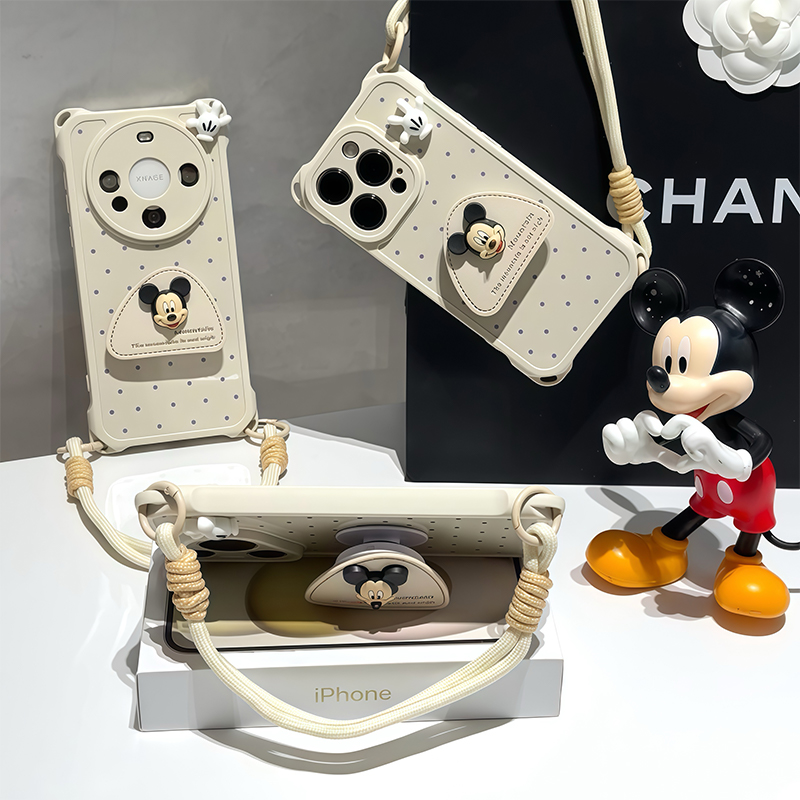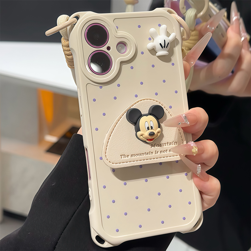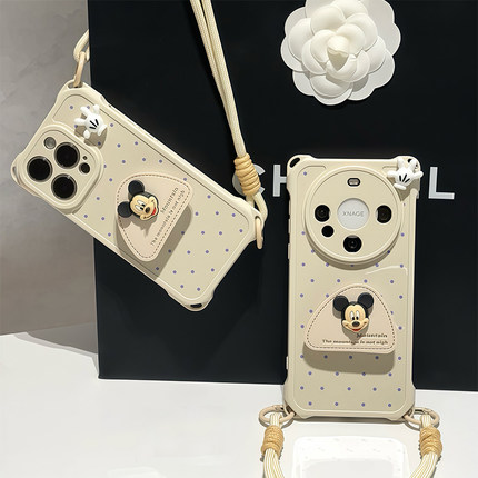 ins波点米奇支架新款适用苹果17Pro手机壳iPhone16max13小米15华为mate70pura80k60vivox200荣耀100nova14s30