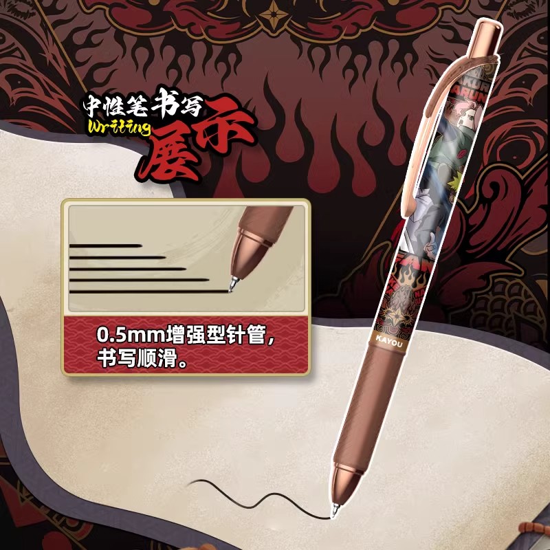 卡游火影忍者中性笔盲盒笔燃动版黑色按动水笔签字笔学生用刷题正版联名款动漫文具周边