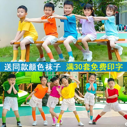 夏季亲子装幼儿园小学生班服纯棉儿童彩色t恤短袖儿童纯色糖果色t