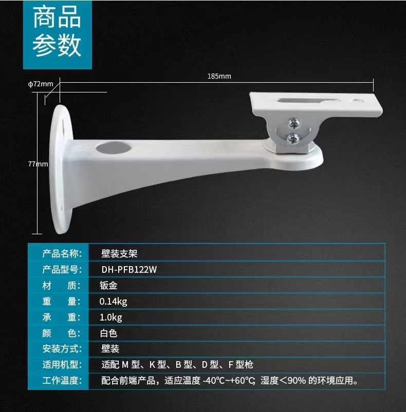 监控支架大华枪机壁装支架DH-PFB122W海康华为宇视通用摄像头支架