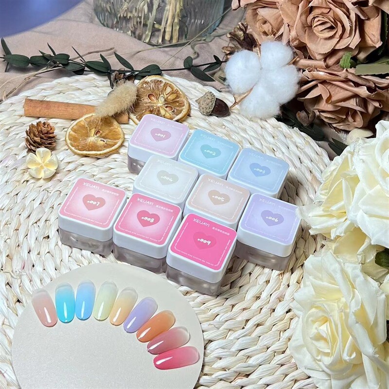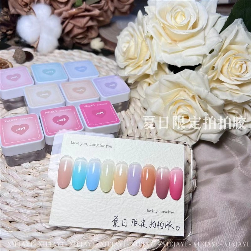 小颖-亚克力方罐夏日美甲渐变腮红拍拍胶9色可彩绘可蹭粉半固态