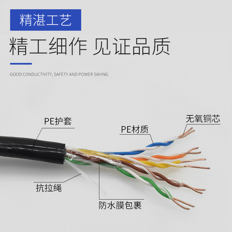 室外监控网线5对10芯足0.5无氧铜室外阻水电话线双绞线户外防水