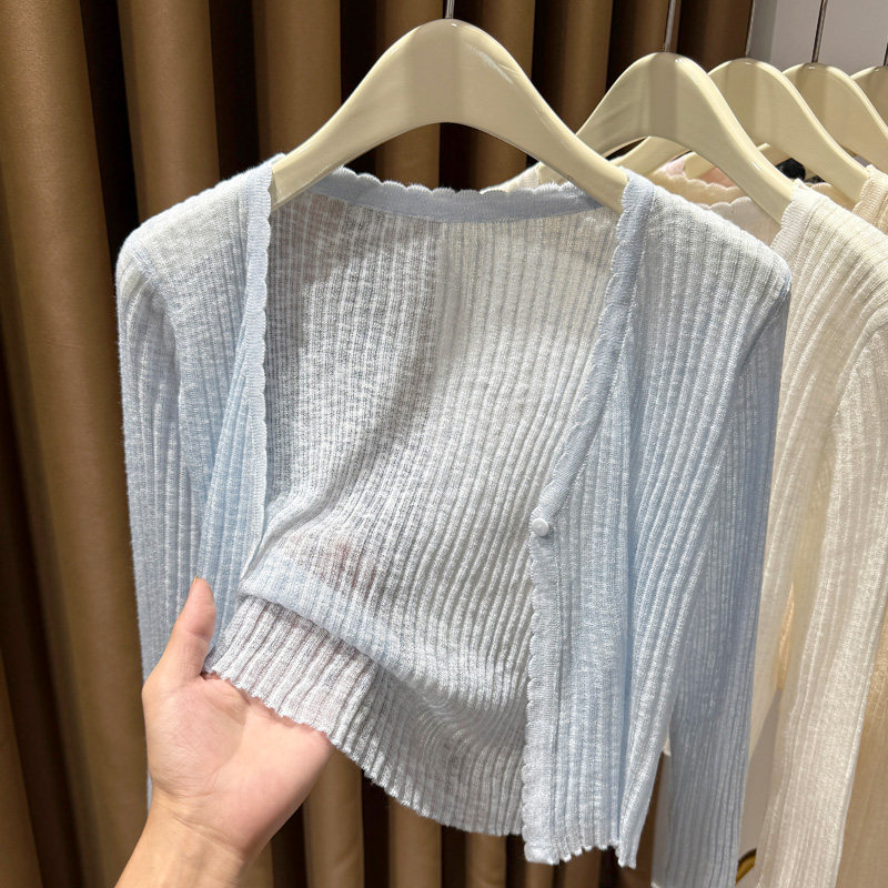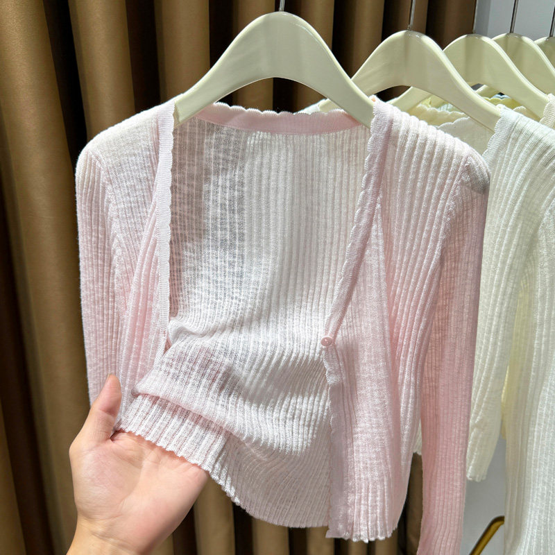 配吊带裙的小外搭披肩防晒开衫女薄款夏季一粒扣冰丝针织空调罩衫