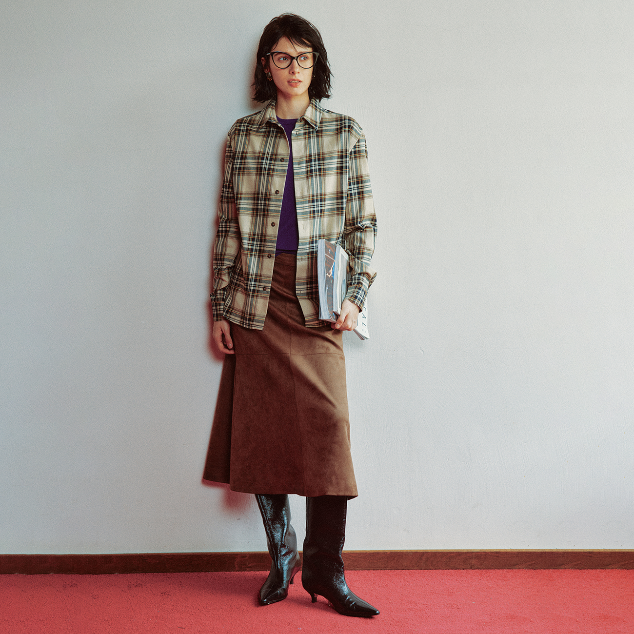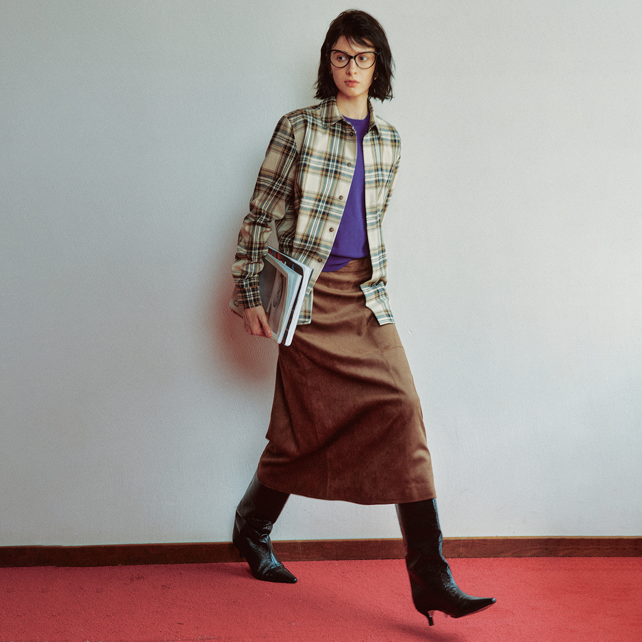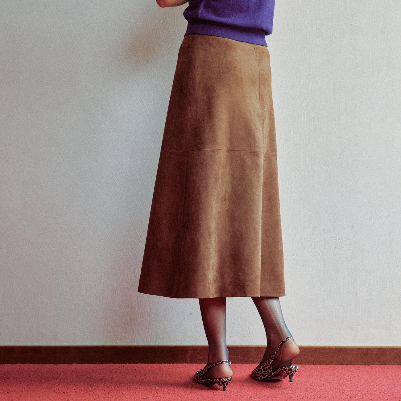 【大梨子天菜】雾面麂皮绒 美拉德简约通勤百搭中高腰A字半身裙女