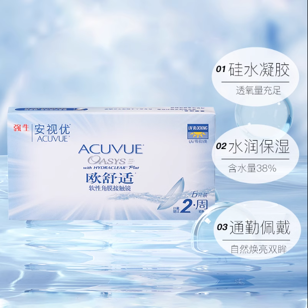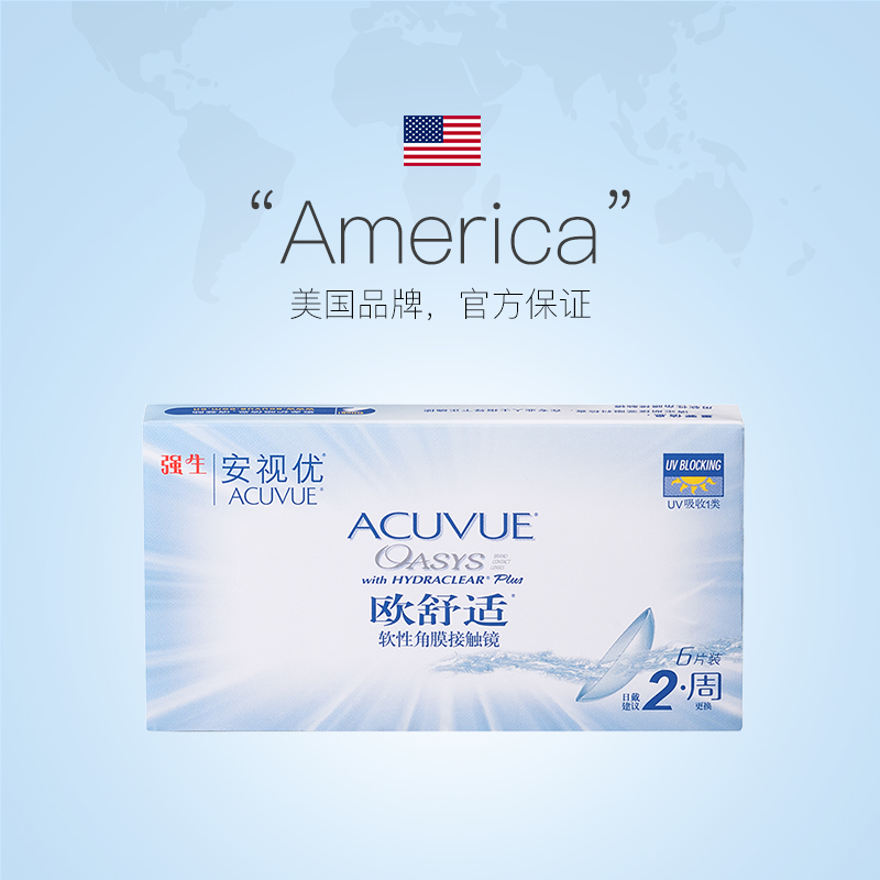 【自营】强生安视优欧舒适硅水凝胶双周抛半月抛隐形近视眼镜6片