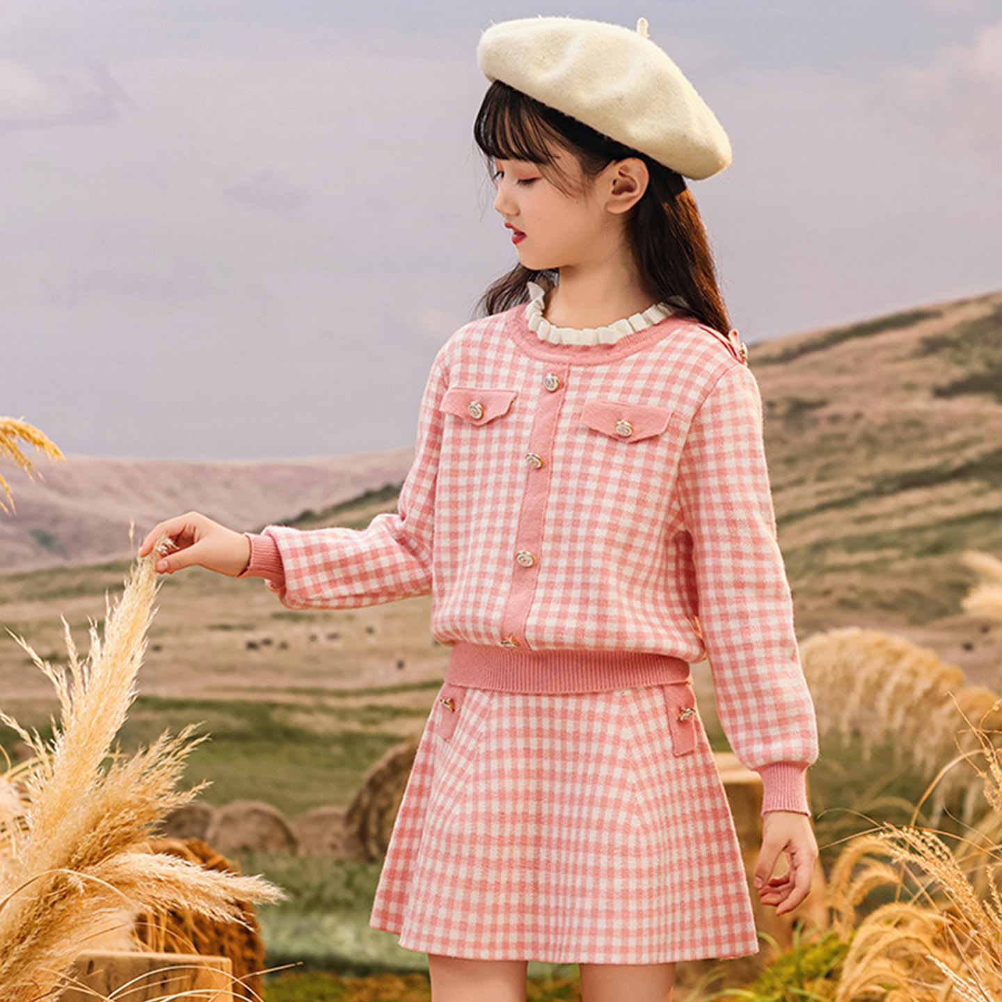 女童小香风针织毛衣套装连衣裙