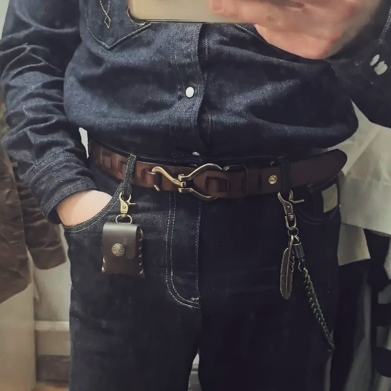 做旧黄铜水兵腰带快脱植鞣牛皮真皮复古皮带牛仔男潮搭大码胖加长